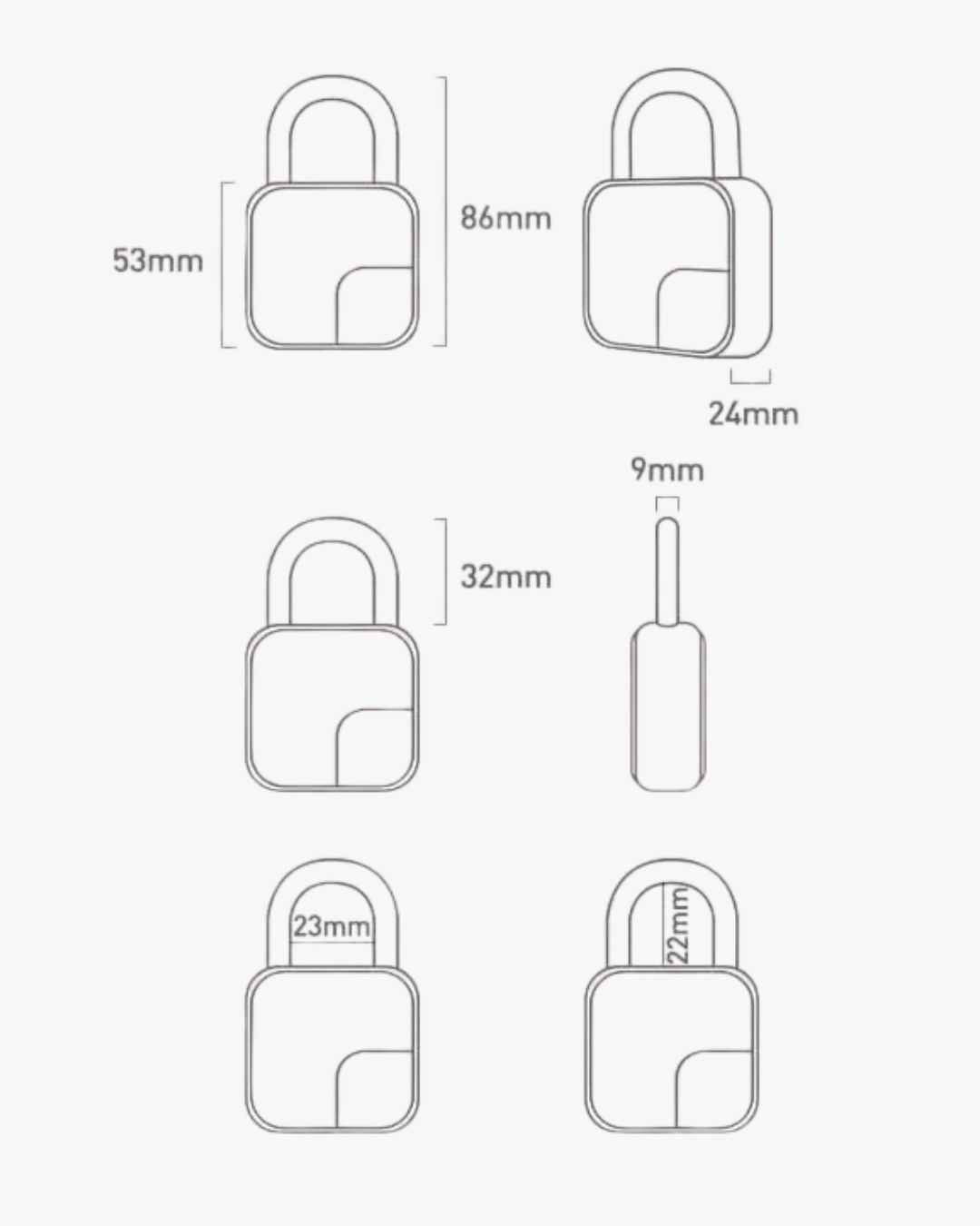 This fingerprint bike lock padlock uses a square 10.4 × 10.4 mm sensor and built‑in memory to store up to 10 prints, including admin fingerprints that can add or remove others without tools. It’s powered by a USB‑rechargeable 300 mAh lithium battery and advertises over 1,000 unlocks per charge, with battery level visible in the companion app.